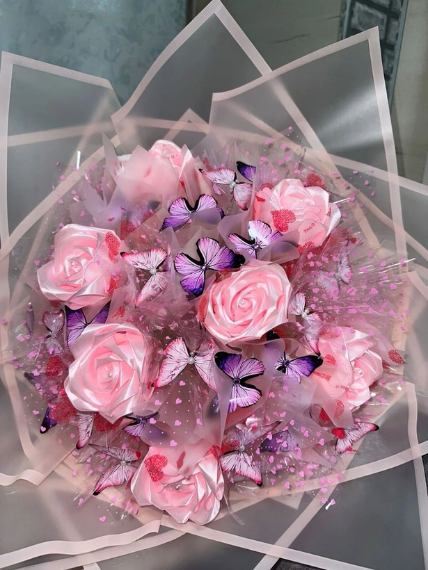 دسته گل پروانه ای با ریسه و هم بی ریسه همچنین ترکیبی با گل